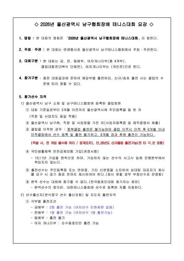 [ ³²±¸ ] 2026³â ³²±¸ÇùȸÀå¹è Å״Ͻº ´ëȸ ¿ä° (¼ö...